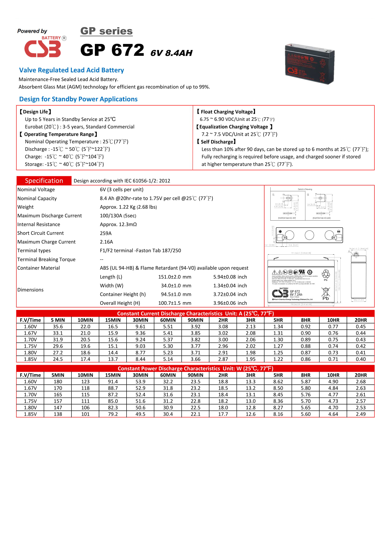 CSB-Battery-GP672-Data-Sheet